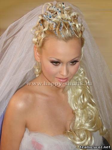 Итак, уже традиционно сложилось, что невеста обязательно убирает волосы в пучок, шикарный конский хвост или сложную прическу, основанную на укладывании волос и завивании их в локоны. Лицо у невесты как правило открыто, а макияж нежный, естественный. Ведь невеста должна предстать перед своим будущим супругом в образе прекрасной принцессы, чтобы тот ни на секунду не усомнился в правильности своего выбора.